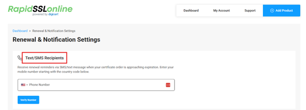 You can choose to receive renewal notifications by SMS/text message. You must first verify your phone number.